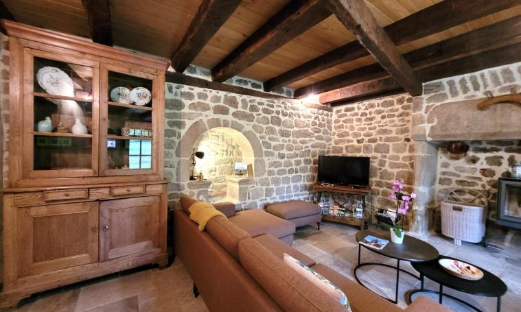 La maison se compose : RDC : 1 salle à manger avec cuisine aménagée et équipée, un coin buanderie. Accès au salon par une marche descendante avec poêle à bois, tv écran plat et lecteur cd. 1 salle d'eau 1 WC indépendant avec point eau 1 chambre "les 7 sources" avec lit double 160x200 A l'étage : Depuis le salon du RDC, accès à la chambre "Rêve d'été", 2 lits simples de 90x200, qui bénéficie aussi d'un escalier extérieur avec petit perron. Plancha, parking privé. Ancien four à pain pouvant servir de rangement. A disposition : jeux de société, badminton, balançoire, toboggan, boulodrome. Le prix comprend : Draps, Chauffage, Electricité Le prix ne comprend pas : Ménage en fin de séjour 50€, Linge de toilette 5€ / pers