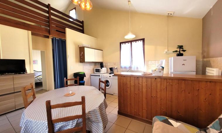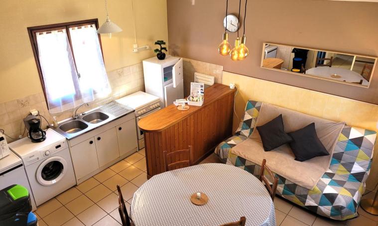 Le gîte se compose: En rez-de-chaussée : D'une pièce de vie avec coin cuisine équipée, salle à manger et petit coin salon. D'une chambre avec lit de 140 donnant accès à la salle d'eau, WC indépendant. A l'étage: Une chambre en mezzanine avec un lit de 140 et 2 lits de 90 pouvant se rapprocher et proposer un lit de 180. Petit abri de voiture et place de parking, barbecue extérieur, salon de jardin en été. Un Kit de ménage avec des produits éco-responsables vous sera fourni.