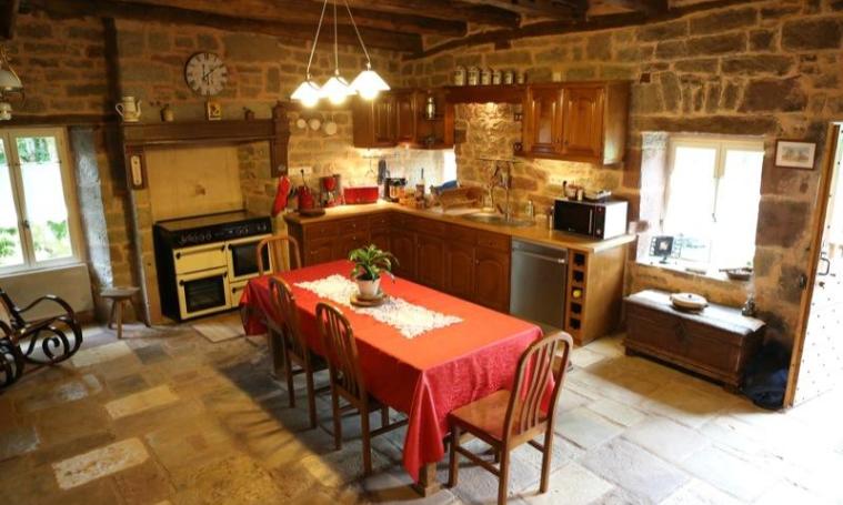 Rénové en 2013, le gîte comprend : une grande pièce à vivre avec cuisine ouverte sur la salle à manger et le salon, 2 salles de bains, 4 chambres, un petit salon, une buanderie.