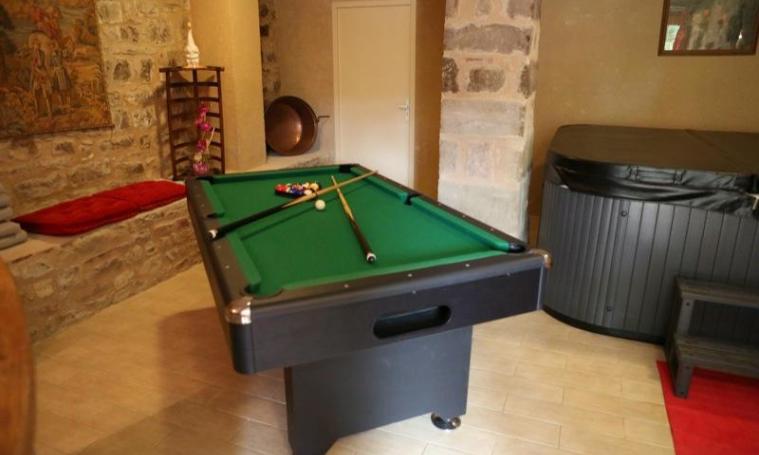 Une salle détente avec bar, billard et jacuzzi