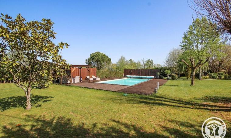 Décorée avec goût aux lignes élégantes et chaleureuses, la maison se situe sur un vaste terrain entièrement clos de 4500 m² ; parc arboré et entretenu avec piscine privée, toujours ensoleillée avec son coin salon détente. Alliant le charme de l'ancien et le moderne, la maison est entièrement équipée en domotique et bénéficie de tout le confort nécessaire.