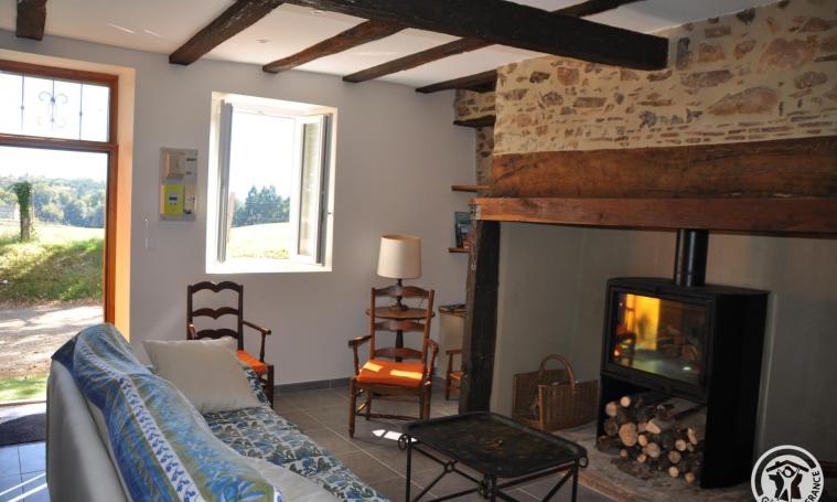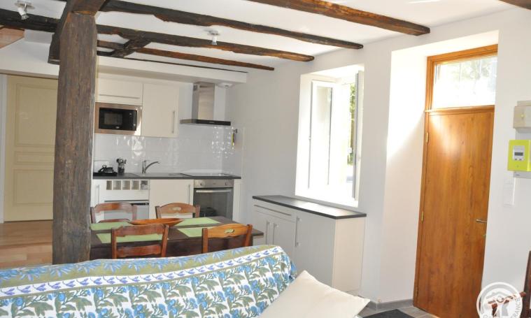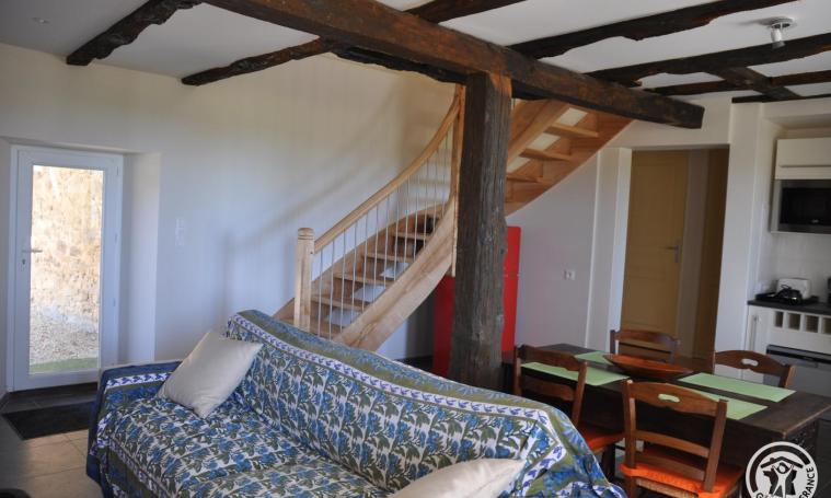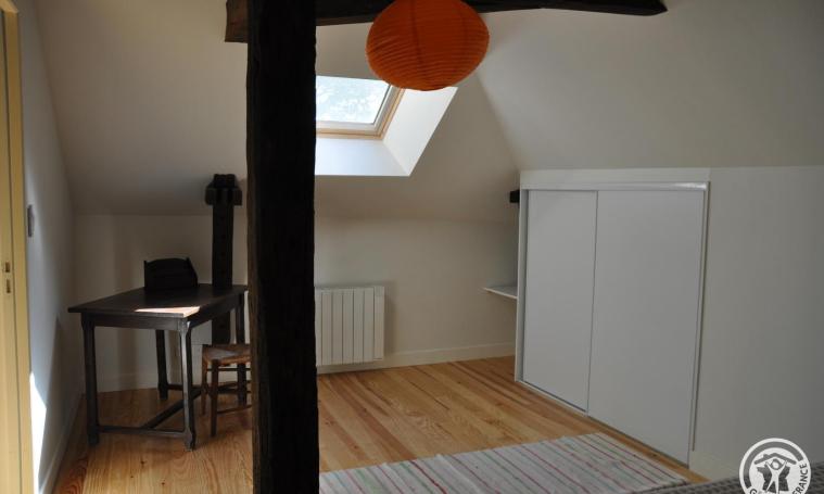 La maison se compose d'un salon/séjour et coin cuisine avec poêle à bois (bois offert), une chambre (1 lit de 140) avec la salle d'eau et WC indépendant. A l'étage : deuxième chambre avec 1 lit de 140 et troisième chambre avec 2 lits de 80 cm et une salle de bains. Certaines options sont non comprises dans le prix (supplément à prévoir)