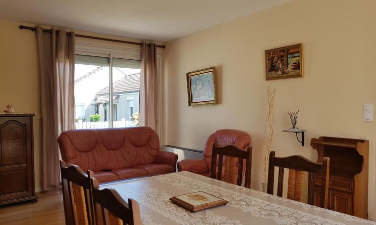 Maison agréable de plain pied située dans un lotissement, qui se compose ainsi : un salon/salle à manger, une cuisine, deux chambres avec chacune un lit de 140, une salle d'eau et un WC indépendant. A l'extérieur, vous pourrez profiter d'un beau petit jardin clos et d'une terrasse pour les beaux jours. Un garage fermé est également à votre disposition et dispose à l'intérieur d'une prise pour le branchement d'une voiture électrique. WIFI et clim réversible dans le logement (Chauffage / Climatisation).