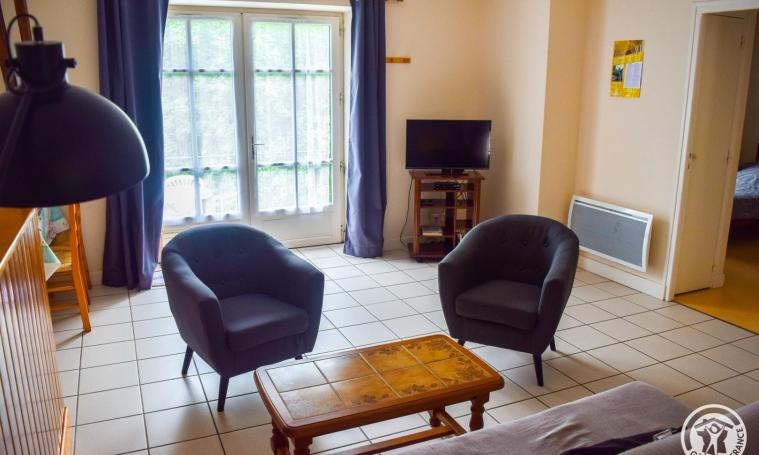 Grange rénovée comprenant 3 gîtes au bord du lac de la Valette et à 2 kilomètres du bourg de Champagnac la Noaille. Ce gîte est situé à l'étage (18 marches pour y accéder). Il se compose d'une salle de séjour avec coin cuisine, d'un coin salon avec canapé convertible, de deux chambres (l'une avec un lit en 140 et l'autre avec deux lits en 90), d'une salle d'eau et de WC indépendant. Vous aurez à disposition une petite terrasse avec parasol pour profiter de la vue sur la nature environnante. Stationnement devant l'hébergement.