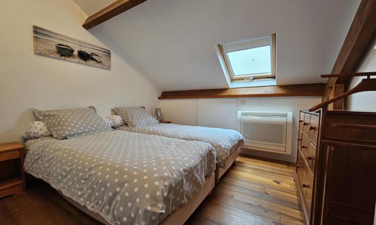 Au rez-de-chaussée : espace de vie réunissant la cuisine, la salle à manger et le coin salon et accès direct sur la terrasse A l'étage : 2 chambres avec la climatisation réversible (1 lit 140) (2 lits 90), salle d'eau et un WC indépendant Extérieur : terrain (700 m²) partiellement clôturé, table et chaises à disposition ainsi qu'un barbecue Équipement bébé : lit parapluie, baignoire, chaise haute. Jeux de société Chauffage électrique et électricité inclus. Draps fournis. Linge de toilette non fourni Forfait ménage 50€