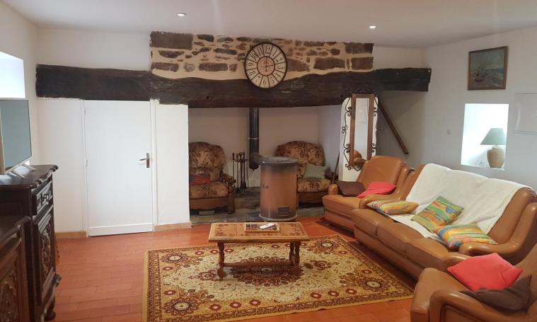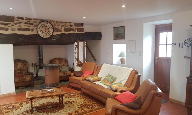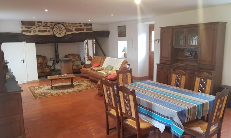 Gîte indépendant, 2 chambres (1 lit 1 place 90, 2 lits 2 places, possibilité lit enfant), salle d'eau avec WC + 1 WC indépendant au rez-de-chaussée, séjour avec coin cuisine, terrasse close, abri pour voiture, chauffage électrique et bois. A 2,5 km du bourg, altitude 500 m. Le prix comprend : L'électricité dans la limite de 8kWh/jour (au-delà relevé de charges) Le prix ne comprend pas : Forfait chauffage 10€/jour du 1er avril au 15/05 et octobre/septembre. Draps 2 pers/paire/séjour : 10€ Forfait ménage 50€