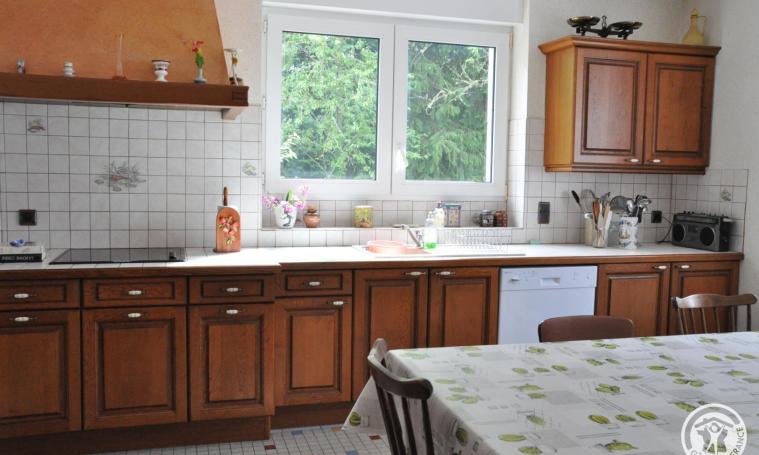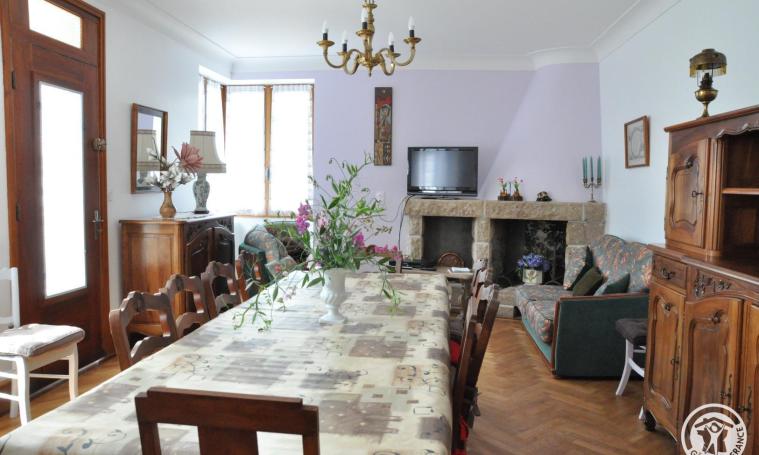 Venez découvrir cette jolie maison en pierre de taille avec balcon et sous-sol sur un grand terrain arboré d'environ 1000m² non clos. L'accès se fait par une marche puis vous profiterez du grand séjour avec accès à un balcon et cheminée décorative, d'une grande cuisine équipée, de deux chambres (lits 140x190cm), d'une salle d'eau avec douche à l'italienne et de wc indépendants. Au sous-sol, après une quinzaine de marche, se trouve un espace buanderie avec lave-linge, sèche-linge et un réfrigérateur-congélateur d'appoint. Le garage est à votre disposition. A l'étage, accessible après une quinzaine de marche, vous profiterez de 5 autres chambres (lit 140x190cm). Une deuxième salle d'eau avec toilette se trouve également au même étage. Le prix comprend : l'électricité dans la limite de 8kWh/jour (au-delà relevé de charges), le linge de maison et de lit sont compris Le prix ne comprend pas : le chauffage (30 €/jour) et le ménage fin de séjour (150€). pas de fourniture de serviettes.