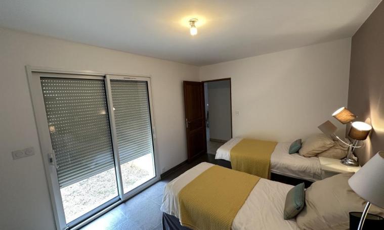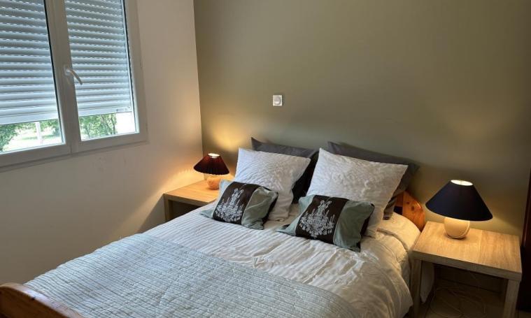 Le gîte se compose sur le même niveau : D'une salle de séjour spacieuse avec cuisine ouverte entièrement équipée et coin salle à manger donnant sur une jolie terrasse en castine avec une grande table, barbecue, parasol et transats. Trois chambres spacieuses, 2 avec un lit double de 140 et 1 avec 2 lits simples 90, dressing et salle d'eau avec lavabo et WC. Attention (douche en phase de réalisation). Salle de bain avec baignoire et lavabo desservant les 2 autres chambres. WC séparés dans le couloir. Carport pour voiture. Grand terrain autour. Local technique avec machine à laver et sèche-linge. Parking sur place. Accueil chevaux possible, deux boxes à disposition avec foin.
