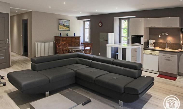 Le gîte comprend sur le même niveau : 2 chambres : 1 chambre avec un lit double (140 cm), 1 chambre avec un lit double (140 cm) et un lit simple (90 cm), Une salle de bain adaptée aux personnes à mobilité réduite (douche à l'italienne), Un WC indépendant, Une grande pièce de vie lumineuse avec cuisine ouverte, coin repas et salon. Connexion Wifi de qualité dans toutes les pièces Informations pratiques : À noter : l'accès à l'entrée du gîte se fait par un escalier de 5 marches. Chauffage non inclus du 15 octobre au 30 avril Stationnement à proximité immédiate du gîte Situé au cœur du village, dans un environnement très calme À proximité de nombreux sites touristiques (Dordogne, Lot, villages médiévaux) Nombreux sentiers de randonnée aux alentours