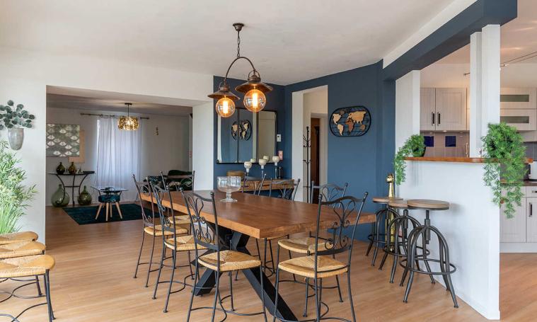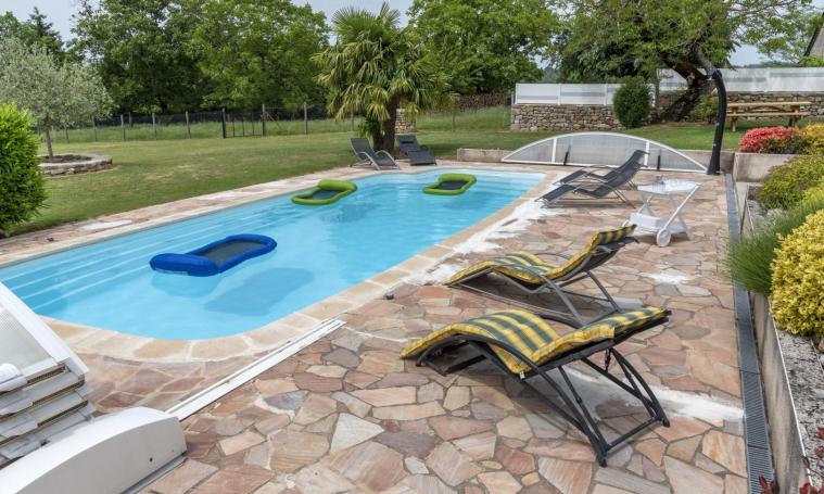 Le gîte se compose de 5 chambres (5 lits 140x190, 2 lits 90x190), Pièce de vie très lumineuse et conviviale avec séjour, coin cuisine, micro-ondes, sèche-linge, salon, cabine de douche hydromassante. 2 salles d'eau, 2 WC. Chauffage électrique et bois. Terrain de 2000 m² clos. Piscine privée couverte (4 X 11 m, profondeur 1 m 45). Tarif dégressif pour location inférieure à 8 personnes hors saisons estivales, nous consulter. Partenariat avec le centre équestre voisin, vous pourrez bénéficier de tarifs réduits ! Stationnement dans la propriété et un garage. Wifi