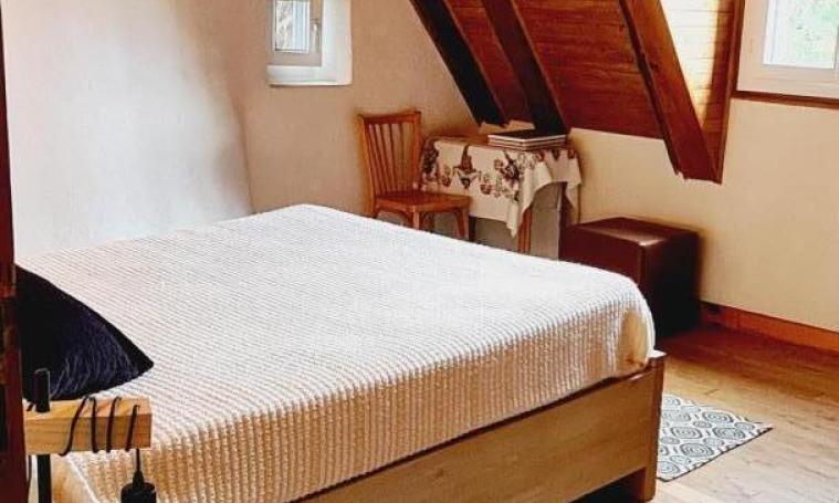 En pierre ancienne gravée de 1800. Un enclos de 1200 m2 au vert. Vous entrez dans une maison au séjour typiquement corrézien de 34 m2 avec "cantou" (cheminée ouverte poêle à bois). En face de la porte d'entrée, une souillarde taillée meuble cette pièce centrale dans le style régional avec un coin cuisine. Étage : 1 chambre avec 1 lit 140/190 - 1 chambre avec 1 lit de 140/190 et 1 lit de 90/190 - 1 salle d'eau avec WC. Sous-sol : Salle d'eau neuve WC indépendant Buanderie avec accès directe sur l'extérieur pour se détendre (grillade, table extérieure), et stockage sécurisé pour les vélos, etc... Chauffage par pompe à chaleur air/air réversible en climatisation.