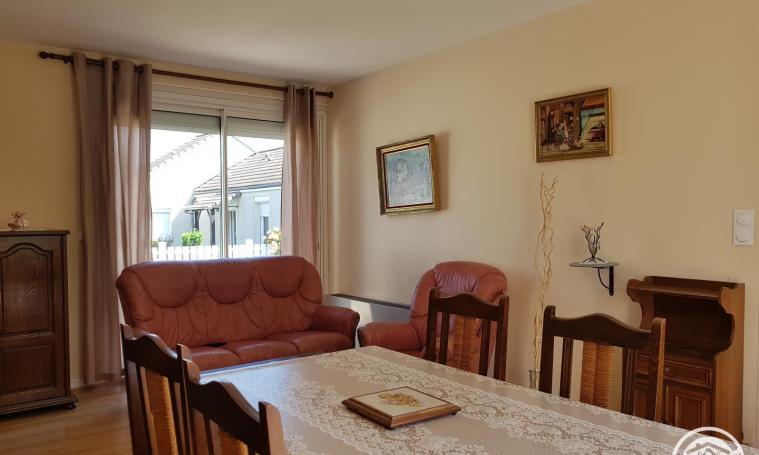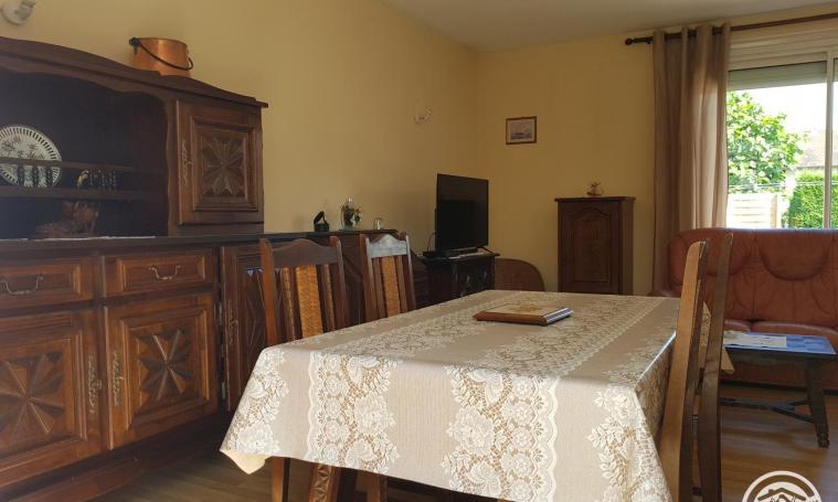 Maison agréable de plain pied située dans un lotissement, qui se compose ainsi : un salon/salle à manger, une cuisine, deux chambres avec chacune un lit de 140, une salle d'eau et un WC indépendant. A l'extérieur, vous pourrez profiter d'un beau petit jardin clos et d'une terrasse pour les beaux jours. Un garage fermé est également à votre disposition et dispose à l'intérieur d'une prise pour le branchement d'une voiture électrique. WIFI et clim réversible dans le logement (Chauffage / Climatisation).