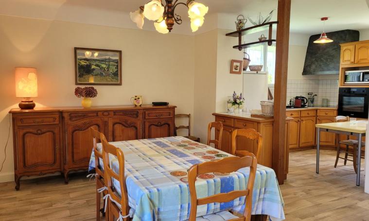 Situé au cœur de la Corrèze, ce gîte confortable et accueillant est parfait pour un séjour en famille ou entre amis . Sur le même niveau, Vous serez séduits par sa grande pièce de vie lumineuse qui combine harmonieusement cuisine, salon et salle à manger. La cuisine est entièrement équipée avec tout le nécessaire pour préparer vos repas . Le salon, avec canapé BZ pouvant accueillir 2 enfants supplémentaire aménagé avec soin, offre un espace détente agréable pour se relaxer après une journée de découverte. La salle à manger, conviviale, pour partager vos repas. Le gîte dispose de deux chambres douillettes avec lits de 140x190, chacune aménagée pour garantir un sommeil réparateur. Une salle d'eau avec douche et WC. Terrain environ 900m² non clos Wifi Stationnement dans la propriété. Inclus dans le tarif : Draps, linge de toilette et de maison ainsi que le ménage. Non inclus: l'électricité au -delà de 8kWh/jour L’accès à l'entrée est à l'étage.
