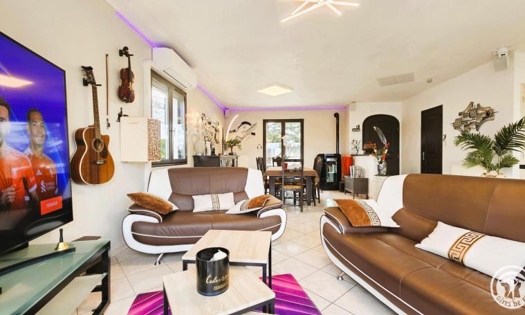 Bienvenue dans ce gîte contemporain de plain-pied, idéal pour accueillir jusqu'à 6 personnes, situé à Meyssac, au cœur du sud de la Corrèze. Cette maison lumineuse et moderne offre tout le confort pour un séjour en famille ou entre amis. Le vaste salon est équipé d'un home cinéma avec une immense télévision, parfait pour des soirées cinéma conviviales. A l'extérieur, vous profiterez d'un superbe jardin arboré de 3000m2, propice à la détente et aux repas sous le soleil. Un terrain de pétanque vient compléter l'ensemble pour partager de belles parties entre proches. La situation géographique est un véritable atout : à seulement quelques minutes de Collonges-la-Rouge, classé parmi les Plus Beaux Villages de France, vous pourrez découvrir de nombreux sites incontournables comme Turenne, Martel, Rocamadour ou la vallée de la Dordogne. Un point de départ idéal pour allier nature, patrimoin ...