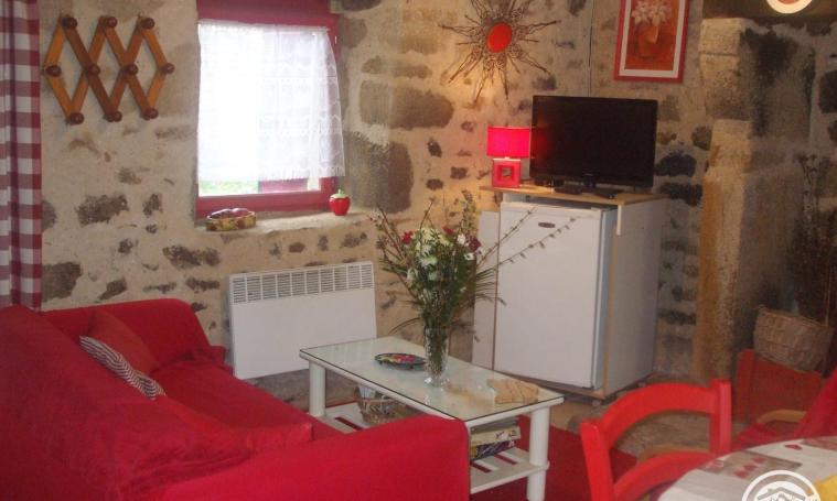 Ce gîte en pierre s'ouvre sur un salon/séjour avec coin cuisine, équipé d'un poêle à bois et d'un WC indépendant pour plus de confort. À l'étage, vous découvrirez deux chambres : l'une avec un lit de 140 cm et l'autre avec un lit de gigogne, offrant deux lits de 90 cm, avec la possibilité d'un couchage supplémentaire. Une salle de bains avec baignoire complète l'ensemble. Terrain de 300 m².