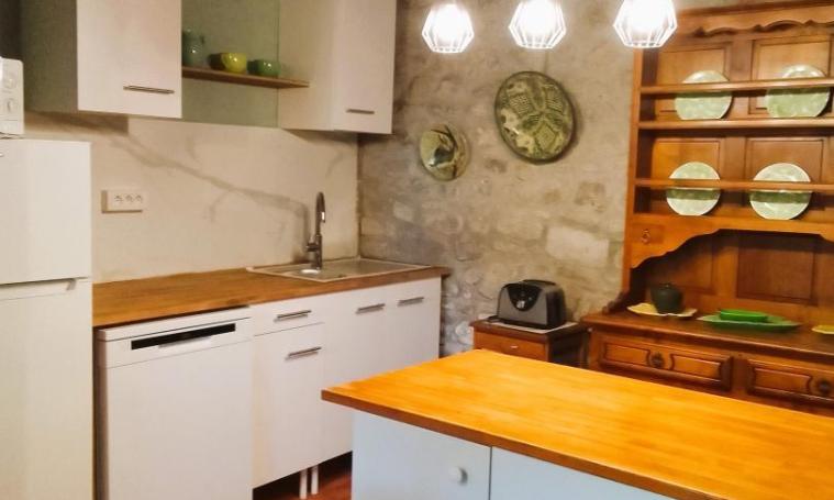 Au rez-de-chaussée, un couloir principal vous invite à découvrir d'un côté un salon, agrémenté de fauteuils confortables, d'une table basse et d'une télévision. De l'autre côté se trouve une cuisine fonctionnelle, équipée d'un lave-linge, d'une gazinière avec hotte, d'un réfrigérateur, d'un micro-ondes, d'un lave-vaisselle, d'une cafetière à filtre, d'une bouilloire et d'un grille-pain. Une table à manger avec des chaises est également présente pour vos repas. Pour créer une ambiance chaleureuse, un poêle à bois est à votre disposition. À l'étage, vous découvrirez trois chambres, chacune dotée d'un lit de 140 cm, ainsi qu'une quatrième chambre plus petite équipée d'un lit de 90 cm supplémentaire. La salle de bain est équipée d'une vasque, et un WC indépendant est disponible pour votre confort. Dépendances avec billard, baby-foot.