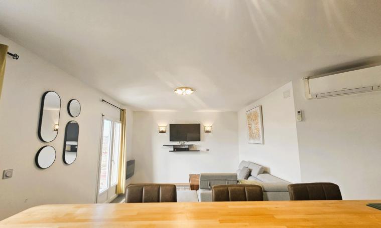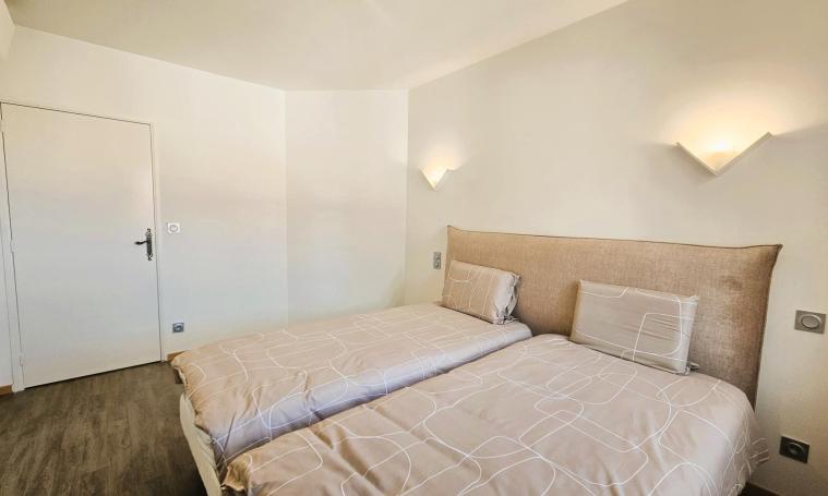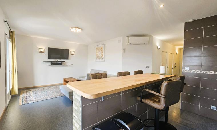 Au premier étage d'un immeuble, cet appartement lumineux de 65 m² propose un cadre de vie agréable. Il se compose de deux chambres confortables : l'une avec un lit queen size de 160 cm et l'autre avec deux lits de 90 cm. Le vaste salon/séjour, baigné de lumière grâce à deux portes-fenêtres, dispose d'un canapé convertible offrant un couchage supplémentaire et bénéficie d'une vue dégagée. La cuisine américaine intégrée, bien équipée, moderne et fonctionnelle, crée un espace convivial parfait pour vos moments de détente. De plus, une salle d'eau avec douche à l'italienne est à votre disposition, ainsi qu'une toilette indépendante pour plus de confort. L'appartement est également doté d'une climatisation réversible, garantissant votre bien-être en toutes saisons. TOUT INCLUS : Draps, serviette de toilette, linge de maison, eau, électricité, chauffage et forfait ménage. TARIF DÉGRESSIF : A partir de 3 nuits, jusqu'à 5 nuits.