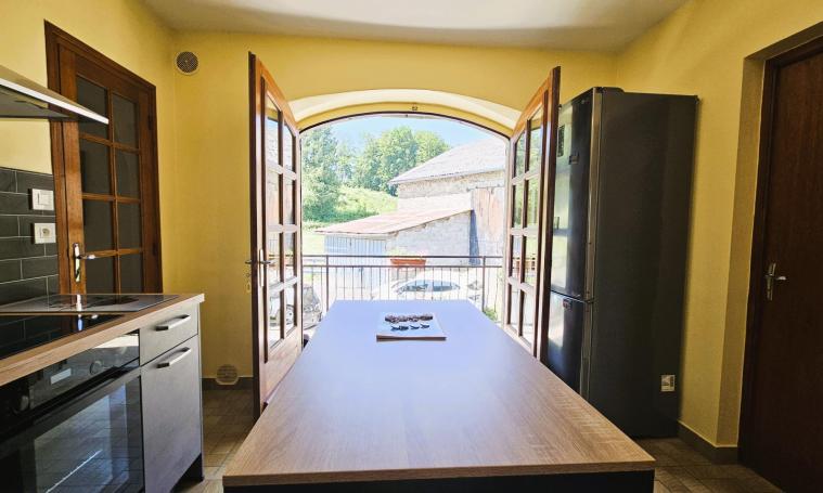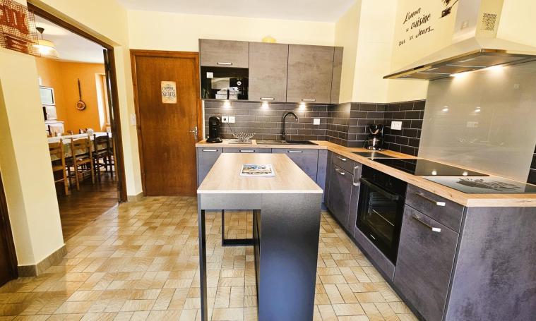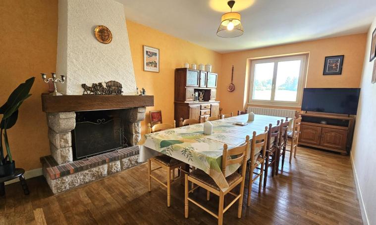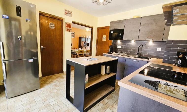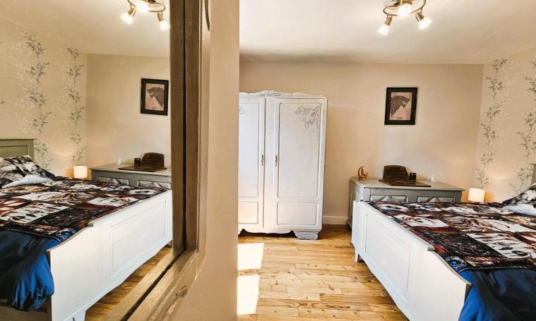 Le gîte se situe au premier étage et s'ouvre sur une cuisine intégrée de qualité, qui distribue les différents espaces de vie. On y trouve une salle à manger avec un insert, une chambre équipée d'un lit double de 140 cm et de deux lits superposés, ainsi qu'une salle d'eau comprenant des toilettes séparées. Un petit salon a été aménagé en salle de cinéma pour des moments de divertissement. À ce niveau, trois chambres supplémentaires sont disponibles : chacune d'elles est dotée d'un lit de 140 cm, à l'exception de la troisième qui dispose d'un lit de 160 cm. Pour accéder au rez-de-chaussée, on descend un escalier où se trouve une chambre supplémentaire équipée d'un lit de 140 cm. Ce niveau comprend également une salle de bains, équipée d'une baignoire avec douche intégrée et de toilettes indépendantes, offrant ainsi un confort optimal aux occupants. TOUT INCLUS : Draps, serviette de toilette, linge de maison, eau, électricité, chauffage et forfait ménage. Animal sur demande.