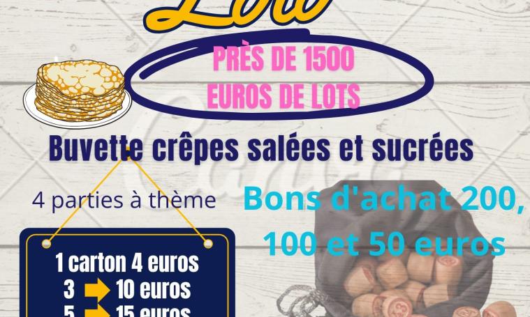 Le comité des fêtes de Saint-Etienne aux Clos organise un loto avec de nombreux lots à gagner, près de 1500€ de lots. 4 parties à thème : bons d'achat 200, 100 et 50€, plusieurs lots électroménagers.