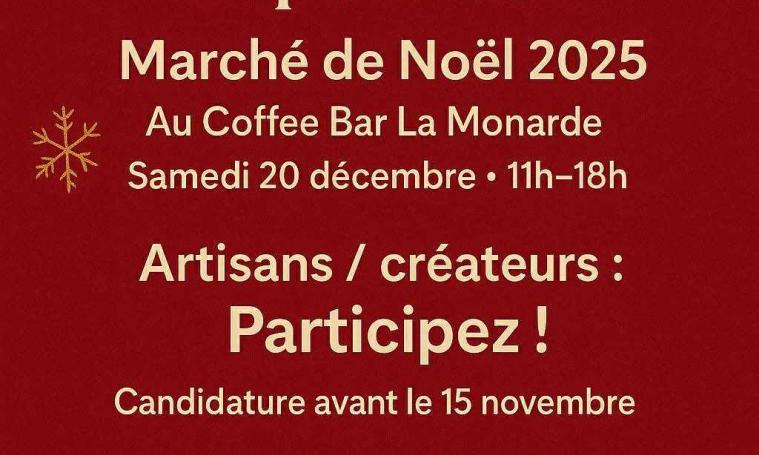 Après le succès de l’année dernière, le Marché de Noël revient pour une nouvelle édition chaleureuse et conviviale ! 11h à 18h , artisans, créateurs locaux, animations...