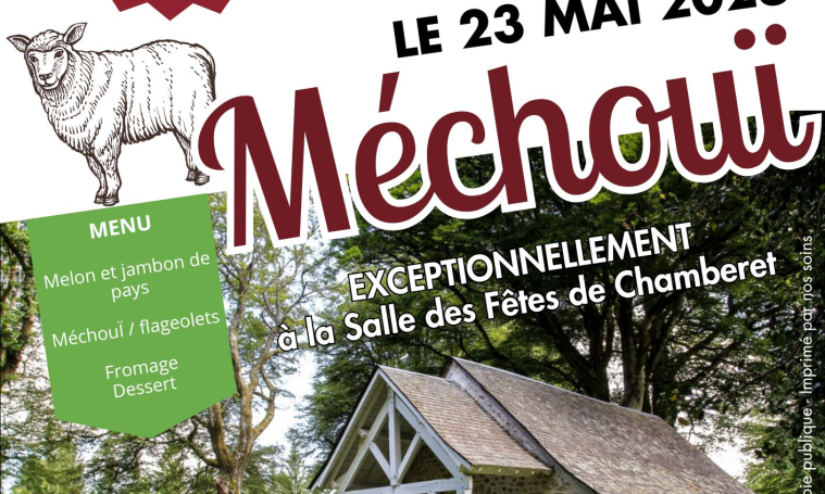 L'association des commerçants Vitrines de Chamberet organise un méchoui , à 11h apéritif, dégustation d'abats, animation par Gualapia La p'tite remorque.
