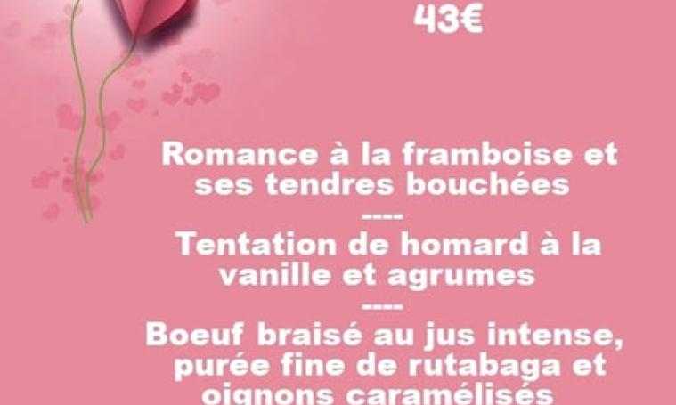 Menu de la Saint-Valentin - Restaurant Aux Papilles d'Egletons. Uniquement sur réservation.