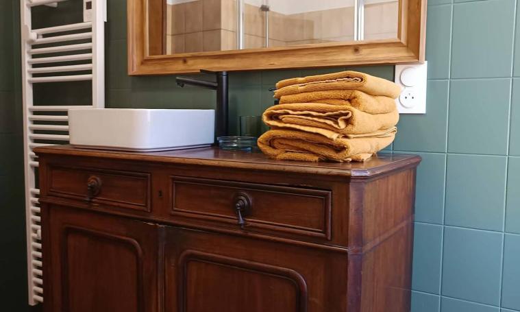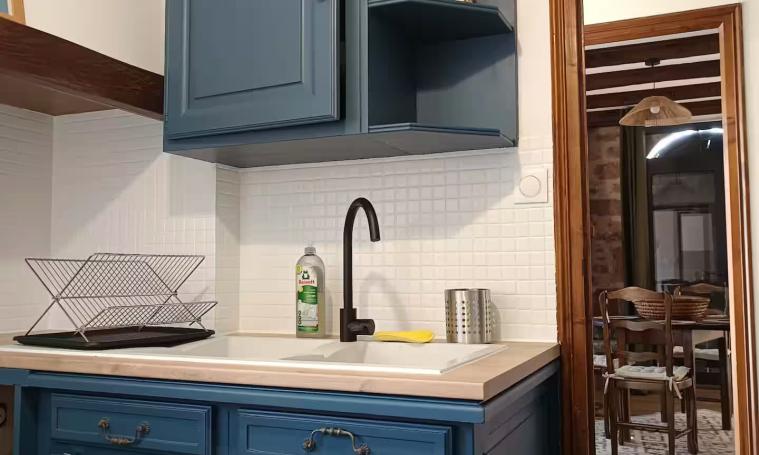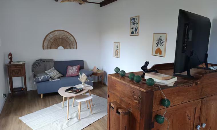 Le logement se compose d'une petite cuisine toute équipée : cuisinière en vitrocéramique, four, évier, grille-pain, bouilloire, cafetière, cuit-vapeur, presse-agrume, lave-vaisselle, frigo avec compartiment congélateur,... Un salon/séjour avec TV connectée, canapé 2 places, livres et jeux de société, WIFI. Une chambre avec un lit en 160. Une salle de bain avec baignoire et vasque, sèche-cheveux à disposition. WC indépendant.