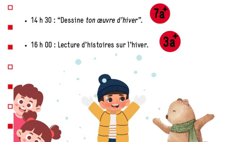 - 16h : lecture d'histoire sur l'hiver (à partir de 3 ans)
