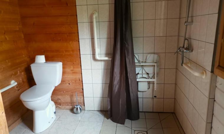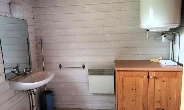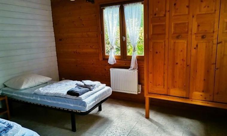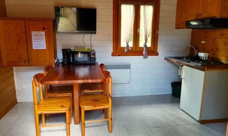 Accessible par une seule petite marche, ce cottage de type "VACANCES" de 48 m² dispose de deux chambres : l'une avec un lit Queen size de 160 cm et une douche à l'italienne avec toilettes communes, et l'autre avec deux lits de 90 cm, une douche à l'italienne et un WC indépendant. L'espace de vie lumineux comprend une cuisine ouverte équipée d'un plan snack, de trois meubles de rangement, d'un évier, d'une plaque de cuisson à 4 feux au gaz avec hotte, d'un réfrigérateur, d'un micro-ondes, d'une cafetière à filtre ainsi que de la vaisselle et des ustensiles. Cet espace se prolonge par un coin repas et un salon avec canapé convertible 2 places, tables basses et TV. À l'extérieur, profitez d'une terrasse en bois semi-couverte, d'un salon de jardin et d'un hamac sous les arbres pour vous détendre. - Deux entrées indépendantes - Linge de lit et serviettes de toilette fournis - Une connexion Internet d'un demi méga gratuite et illimitée pour un appareil par hébergement