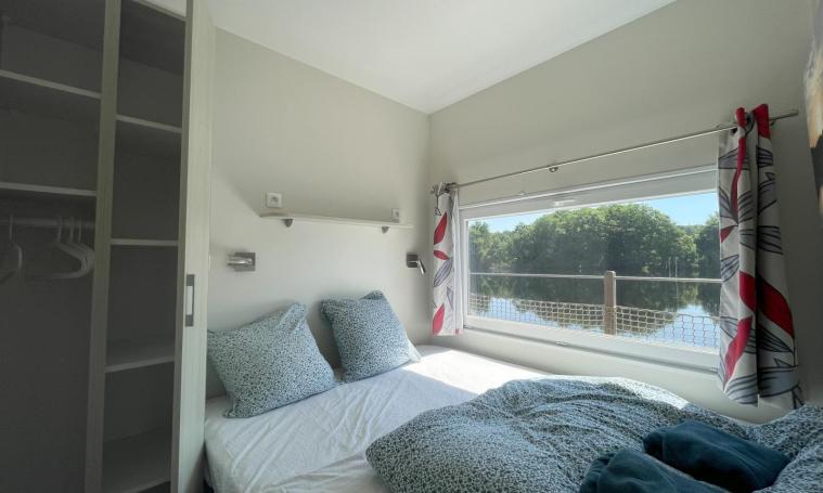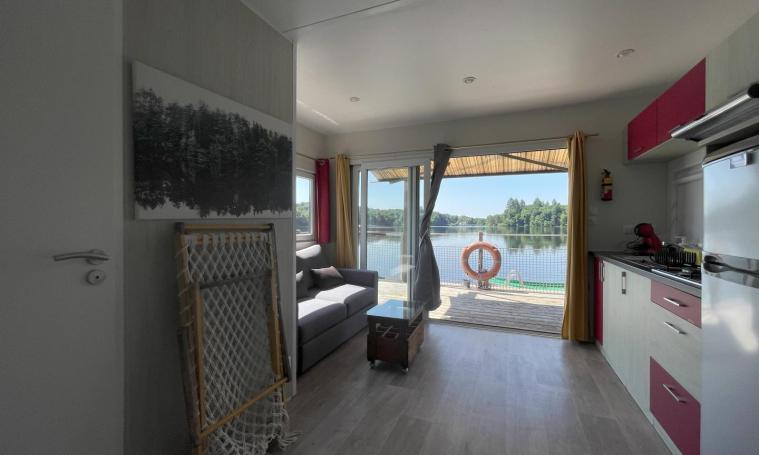 Découvrez cette maison FLOTTANTE d'environ 54 m², dont 30 m² de terrasse, pouvant accueillir jusqu'à 4 personnes. Elle dispose de deux chambres : une avec un lit double (160x200) et l'autre équipée de deux lits superposés (80x190). La pièce de vie, baignée de lumière, s'ouvre sur la terrasse et comprend un coin salon accueillant et une cuisine équipée avec une plaque de cuisson à gaz, un réfrigérateur, un micro-ondes, une machine à café Dolce Gusto, ainsi qu'une table et des chaises. Pour votre confort, la salle d'eau est dotée d'une douche, et un WC indépendant est également à votre disposition. Profitez d'une grande terrasse sécurisée pour savourer vos repas en plein air, plonger dans un bon livre ou simplement contempler la vue apaisante sur l'étang. Notez que l'hébergement ne propose pas de WIFI pour préserver la quiétude du lieu. Une expérience unique, en pleine nature, idéale pour déconnecter. - Lits faits à l'arrivée - Linge de lits et serviettes de toilette fournis
