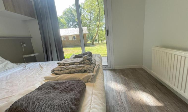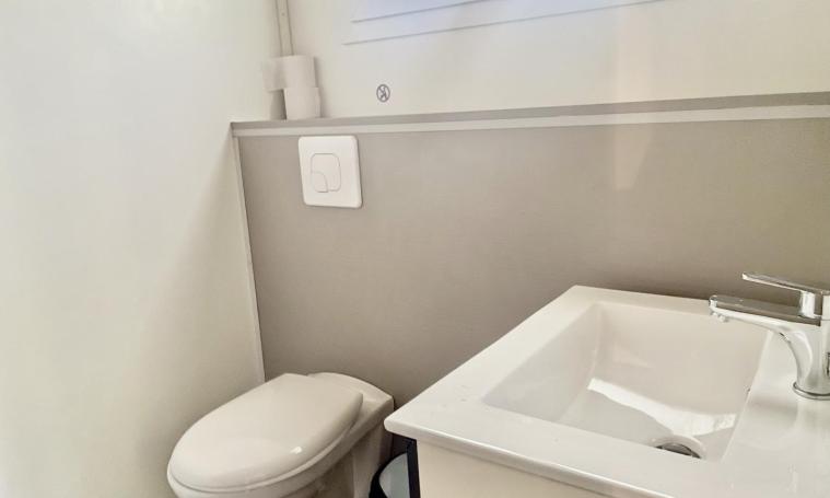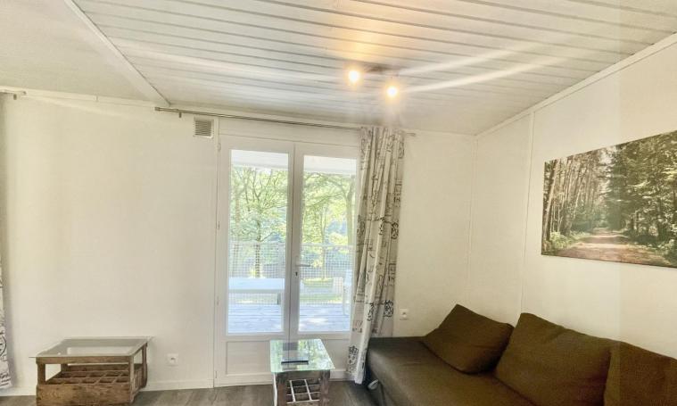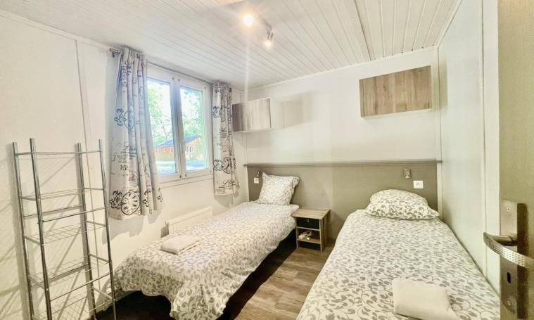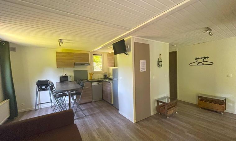 Accessible par une seule petite marche, ce cottage de type "VACANCES" de 48 m² dispose de deux chambres : l'une avec un lit de 140 cm et une douche à l'italienne avec toilettes communes, et l'autre avec deux lits de 80 cm, une douche à l'italienne et un WC indépendant. L'espace de vie lumineux comprend une cuisine ouverte équipée d'un plan snack, de trois meubles de rangement, d'un évier, d'une plaque de cuisson à 4 feux au gaz avec hotte, d'un réfrigérateur, d'un micro-ondes, d'une cafetière à filtre ainsi que de la vaisselle et des ustensiles. Cet espace se prolonge par un coin repas et un salon avec canapé convertible 2 places, tables basses et TV. À l'extérieur, profitez d'une terrasse en bois semi-couverte, d'un salon de jardin et d'un hamac sous les arbres pour vous détendre. - Deux entrées indépendantes - Linge de lit et serviettes de toilette fournis - Une connexion Internet d'un demi méga gratuite et illimitée pour un appareil par hébergement