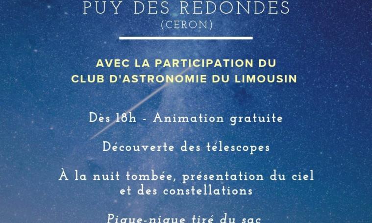 Avec la participation du club d'Astronomie du Limousin - Dès 18 h animation gratuite - Découvert des télescopes - A la nuit tombée, présentation du ciel et des constellations