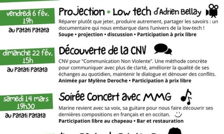 Les jours rallongent (un peu) et l'Association Les Épicés est de retour avec une programmation qui sent bon le jeu, la musique, le partage et l'arrivée du printemps 🌸 Programmation février-mars sur l'affiche.