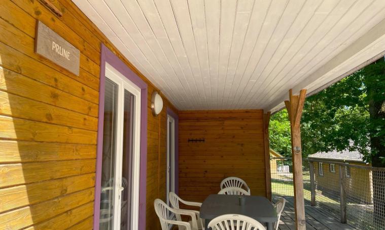Accessible par une seule petite marche, ce cottage de type "VACANCES" de 48 m² dispose de deux chambres : l'une avec un lit de 140 cm et une douche à l'italienne avec toilettes communes, et l'autre avec deux lits de 80 cm, une douche à l'italienne et un WC indépendant. L'espace de vie lumineux comprend une cuisine ouverte équipée d'un plan snack, de trois meubles de rangement, d'un évier, d'une plaque de cuisson à 4 feux au gaz avec hotte, d'un réfrigérateur, d'un micro-ondes, d'une cafetière à filtre ainsi que de la vaisselle et des ustensiles. Cet espace se prolonge par un coin repas et un salon avec canapé convertible 2 places, tables basses et TV. À l'extérieur, profitez d'une terrasse en bois semi-couverte, d'un salon de jardin et d'un hamac sous les arbres pour vous détendre. - Deux entrées indépendantes - Linge de lit et serviettes de toilette fournis - Une connexion Internet d'un demi méga gratuite et illimitée pour un appareil par hébergement