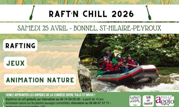 C’est reparti pour le Raft’n Chill ! Samedi 25 avril, venez affronter les rapides de la Corrèze entre Tulle et Brive. En famille, entre amis, rires et sensations garantis !