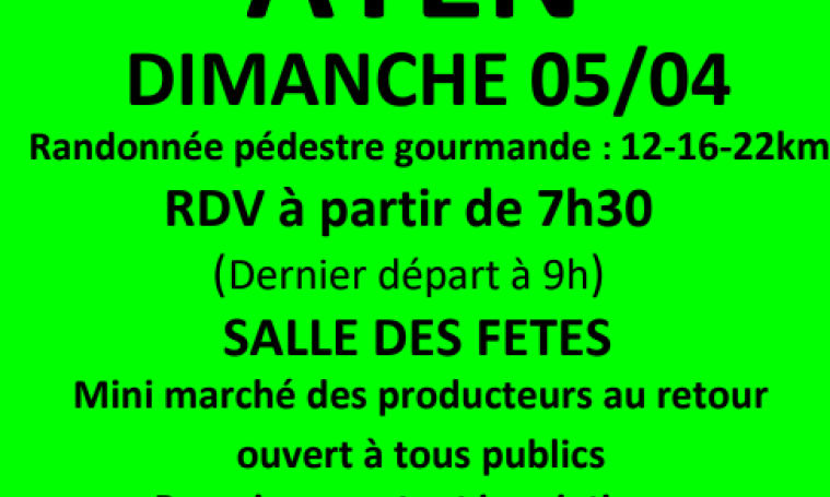 L’association PBC organise la 14ème rando du Goût et vous accueille à partir de 7h30 à la salle des fêtes. 3 circuits au choix :