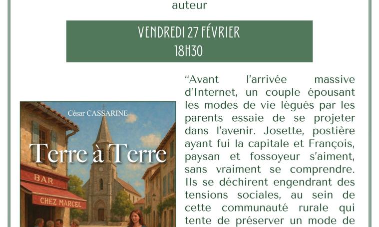 Rencontre littéraire avec César Cassarine, auteur ussellois, pour son dernier roman Terre à Terre, explorant les liens entre l'homme, la terre et le langage, avec engagement et dérision