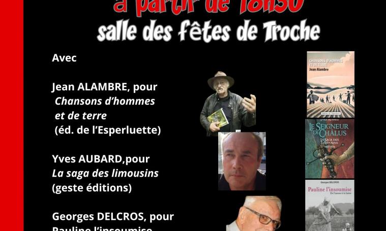 En présence de : Jean Alambre (Chansons d'hommes et de terre), Yves Aubard (La saga des Limousins), Georges Delcros (Pauline l'insoumise) et Corinne Javelaud (Rosette et Anaé).
