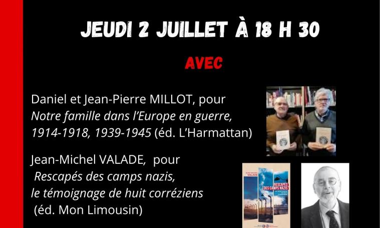 En présence de Daniel et Jean-Pierre Millot ("Notre famille dans l'Europe en guerre 1914-1918, 1939-1945") et Jean-Michel Valade ("Rescapés des camps nazis, le témoignage de huit corréziens").