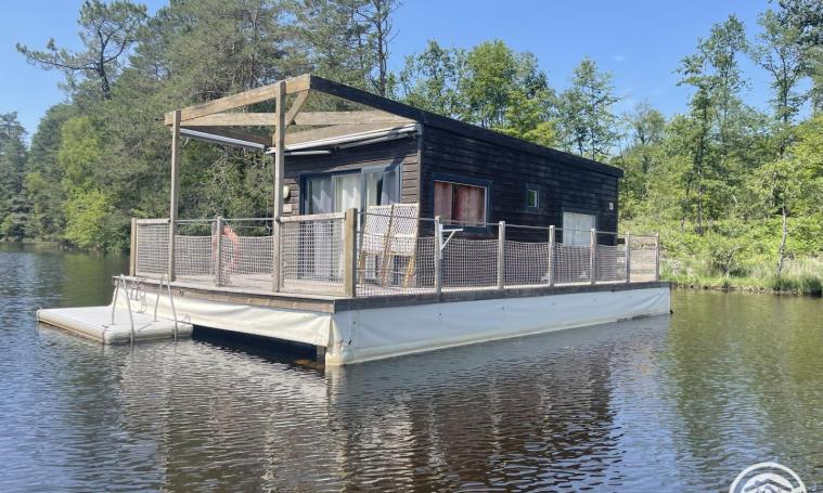 Découvrez cette maison FLOTTANTE d'environ 54 m², dont 30 m² de terrasse, pouvant accueillir jusqu'à 4 personnes. Elle dispose de deux chambres : une avec un lit double (160x200) et l'autre équipée de deux lits superposés (80x190). La pièce de vie, baignée de lumière, s'ouvre sur la terrasse et comprend un coin salon accueillant et une cuisine équipée avec une plaque de cuisson à gaz, un réfrigérateur, un micro-ondes, une machine à café Dolce Gusto, ainsi qu'une table et des chaises. Pour votre confort, la salle d'eau est dotée d'une douche, et un WC indépendant est également à votre disposition. Profitez d'une grande terrasse sécurisée pour savourer vos repas en plein air, plonger dans un bon livre ou simplement contempler la vue apaisante sur l'étang. Notez que l'hébergement ne propose pas de WIFI pour préserver la quiétude du lieu. Une expérience unique, en pleine nature, idéale pour déconnecter. - Lits faits à l'arrivée - Linge de lits et serviettes de toilette fournis