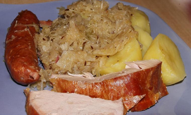 Menu : Cocktail, Soupe, Choucroute garnie, Salade et fromage, Dessert et café. Bière comprise.