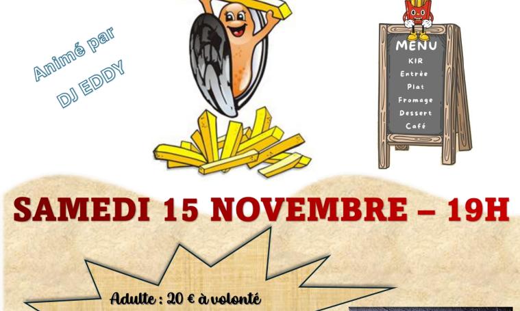 Soirée moules frites animé par DJ Eddy - Tarifs : adultes : 20 € à volonté / enfants 10 €-