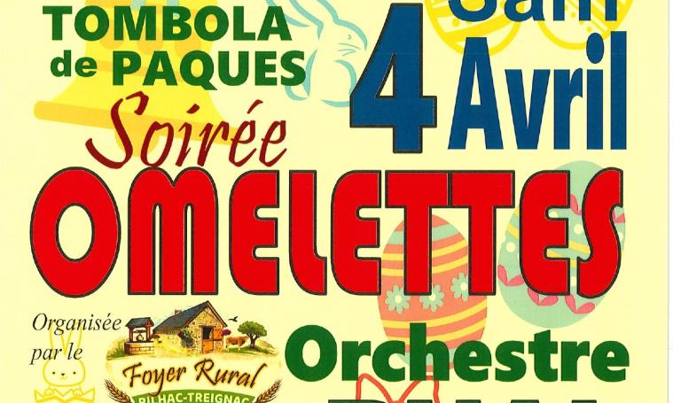 Soirée omelettes organisée par le Foyer Rural de Rilhac-Treignac et animée par l' Orchestre Bernard Rual.