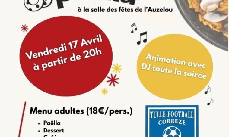 Animation DJ toute la soirée - Menu adulte : 18 € : Paëlla - Dessert - Café - Menu enfants - 12 ans : 8 € : Tenders - Purée - Dessert et 1 boisson -