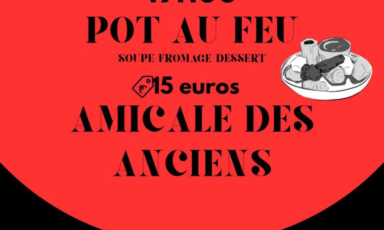 L’Amicale des Anciens vous invite à son Pot-au-feu à partir de 19h00. Au menu : soupe, pot au feu, fromage et dessert