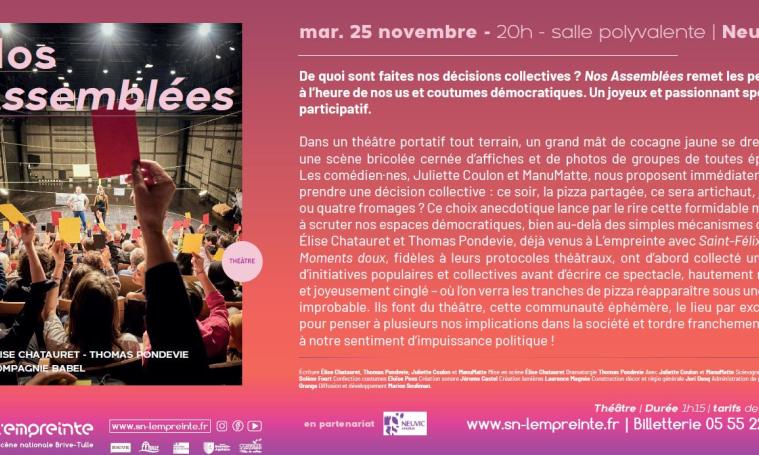 La mairie de Neuvic vous propose une expérience théâtrale originale et participative : « Nos Assemblées », avec L'empreinte, Scène nationale Brive-Tulle