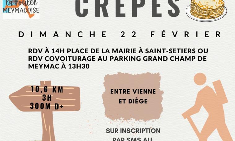 L'association La Foulée Meymacoise organise une sortie crêpes "Entre Vienne et Diège" à Saint-Setiers.
