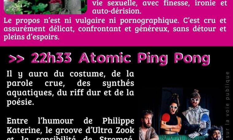 22h33 Atomic Ping Pong : Il y aura du costume, de la parole crue, des synthés aquatiques, du riff dur et de la poésie.