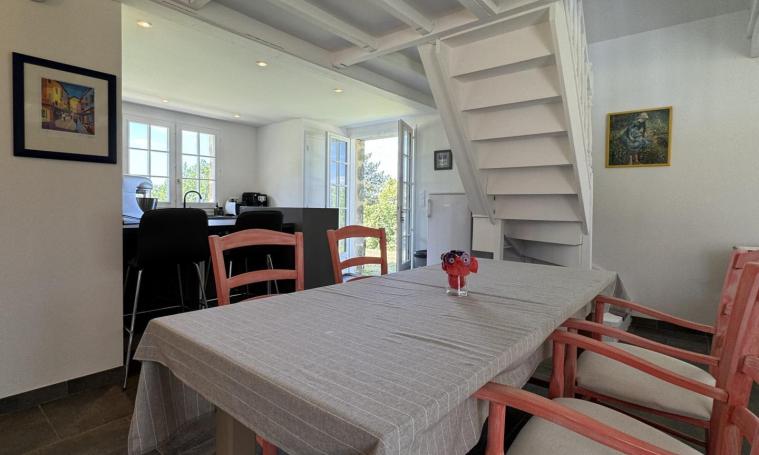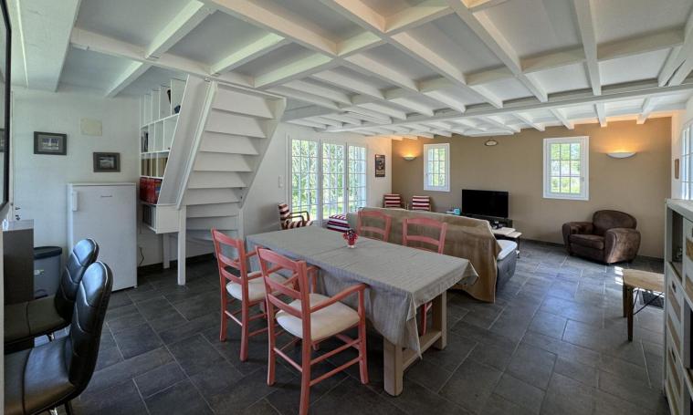 Le gîte "Tennis", idéalement situé près de la maison du propriétaire, offre un cadre confortable pour un séjour agréable. Au rez-de-chaussée, une grande pièce à vivre lumineuse vous accueille, offrant une vue imprenable sur le jardin. Cet espace convivial inclut un canapé confortable, une télévision, un accès au WIFI, ainsi qu'un coin repas. La cuisine intégrée, à la fois fonctionnelle et pratique, est entièrement équipée pour vous permettre de préparer de délicieux plats. De plus, un WC indépendant est à votre disposition. À l'étage, vous serez enchanté de découvrir deux chambres climatisées. La première chambre est dotée d'un spacieux lit mesurant 180x200 cm, parfait pour des nuits de repos confortable. La seconde chambre, quant à elle, propose deux lits individuels de 90x200 cm, idéaux pour accueillir des amis ou des membres de la famille. Pour compléter cet étage, une salle de bain moderne est également accessible, offrant tout le nécessaire pour votre confort. TARIF TOUT INCLUS