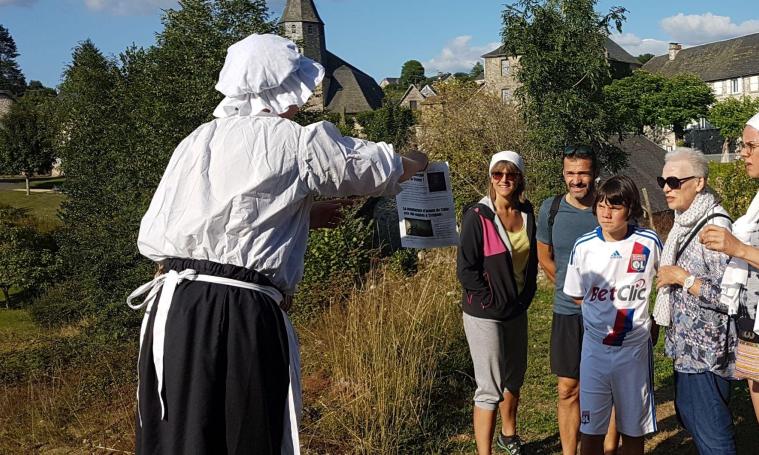 Munie de son journal du jour et des quelques potins du coin, cette commère vous embarque dans les rues et anciens chemins de Treignac et vous livre les actualités du moment : le retour du marquis, ses mésaventures avec quelques colporteurs ou encore des guérissons miraculeuses, au détour d’une coursière vous risquez même de « finir d’entrer » dans une maison treignacoise…